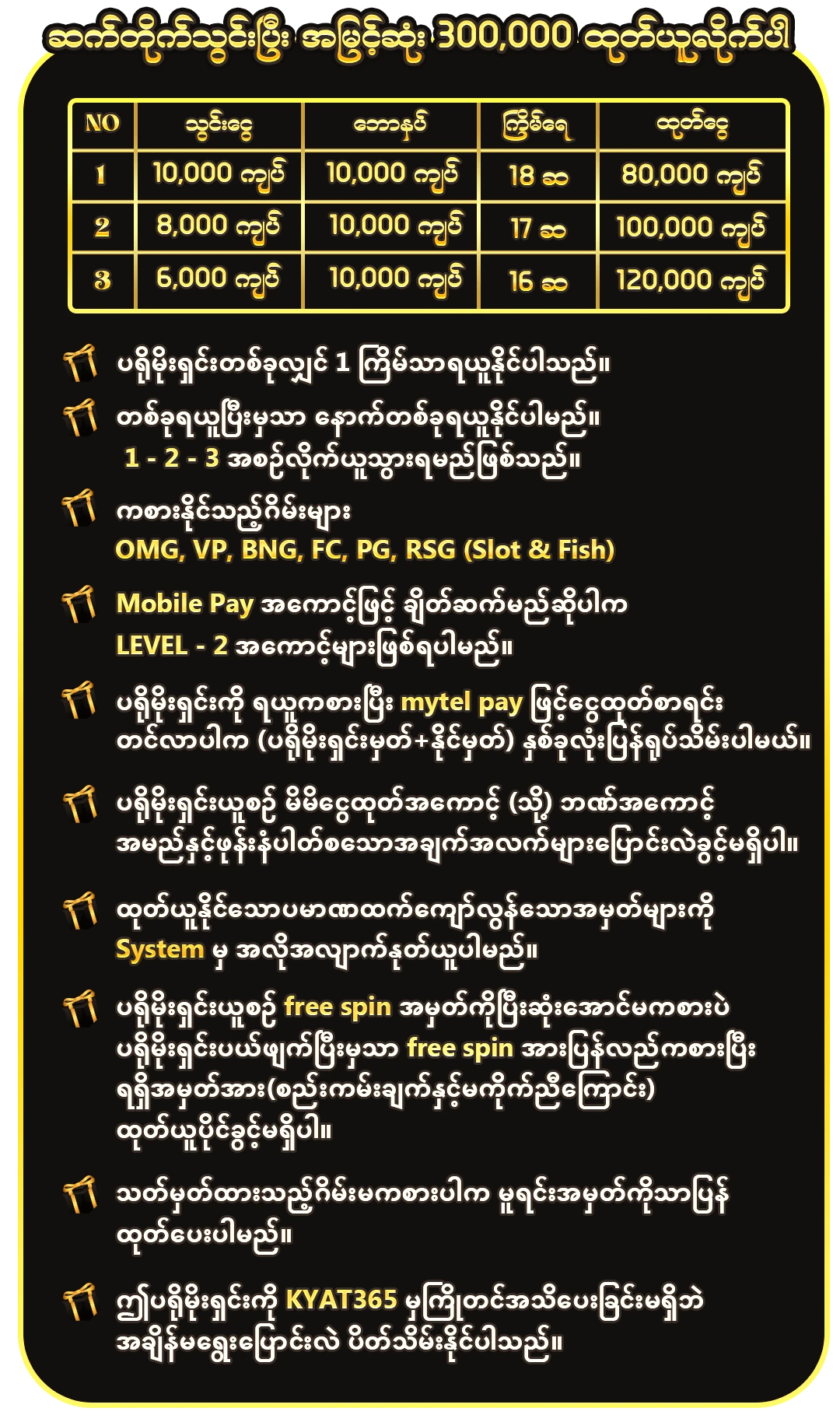 6. KYAT365.com has the right to amend, change and stop the promotion at any time without prior notice.